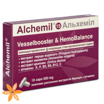 Біологічно активні компоненти, що входять до складу Альхеміл ® зміцнюють стінки судин, запобігають виникненню кровотеч, сприяють відновленню і підтримці гормонального балансу та процесів гоместазу. Можуть бути ефективними та застосовуватися як допоміжний засіб при: