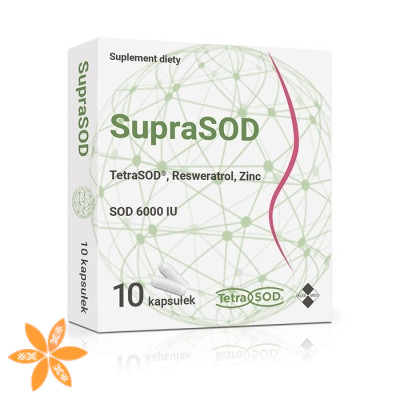 СупраSOD - дієтична добавка, що рекомендована, як додаткове джерело антиоксидантних ферментів і речовин. Має антигіпоксичну, протизапальну та антицитолітичну дію.