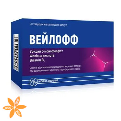 1 тверда желатинова капсула містить: уридин 5-монофосфат - 50 мг (mg); фолієва кислота - 400 мкг (μg); вітамін B12 - 3 мкг (μg)