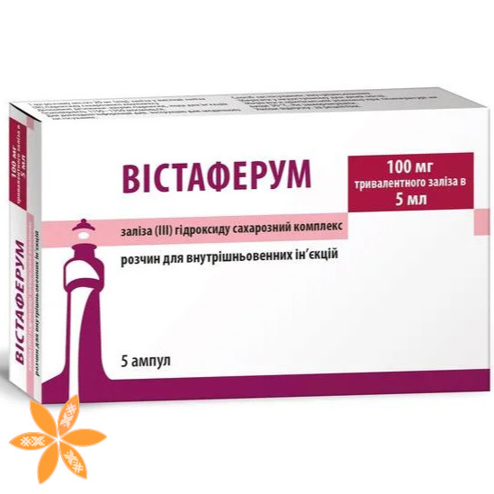 ВІСТАФЕРУМ показаний пацієнтам, яким не можуть бути призначені пероральні препарати заліза у зв'язку з їх непереносимістю, неефективністю або наявністю захворювань шлунково-кишкового тракту. Не слід одночасно застосовувати ВІСТАФЕРУМ із залізовмісними пероральними засобами, оскільки абсорбція заліза, застосовуваного всередину, знижується. Тому пероральне лікування препаратами заліза потрібно починати не раніше ніж через 5 днів після останньої ін'єкції препарату.