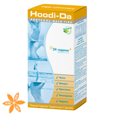 - Сприяє зменшенню апетиту на 30-50% завдяки молекулі Р57, що міститься в екстракті Худіі Гордон (Hoodia Gordonii).