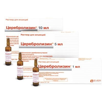1 мл розчину містить 215,2 мг концентрату Церебролізину® (пептидного препарату, що виробляється з головного мозку свиней);