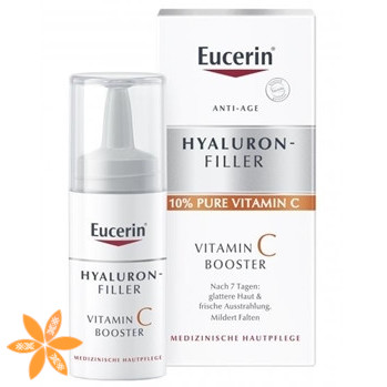 Концентрований 10% Вітамін С в складі б'юті-бустера Гіалурон-Філера від Eucerin має антиоксидантну дію і стимулює вироблення колагену в клітинах шкіри. Низькомолекулярна гіалуронова кислота досягає шарів епідермісу, в яких утворюються зморшки. Лікохалкон А є потужним антиоксидантом, який додатково покращує антиоксидантний захист клітин шкіри.